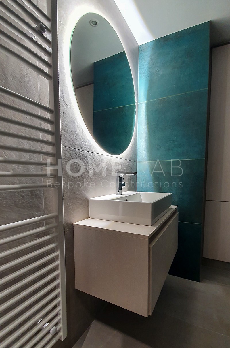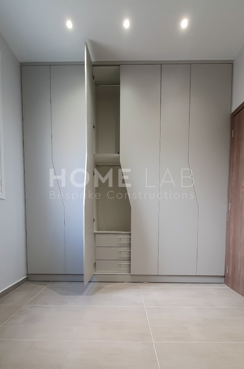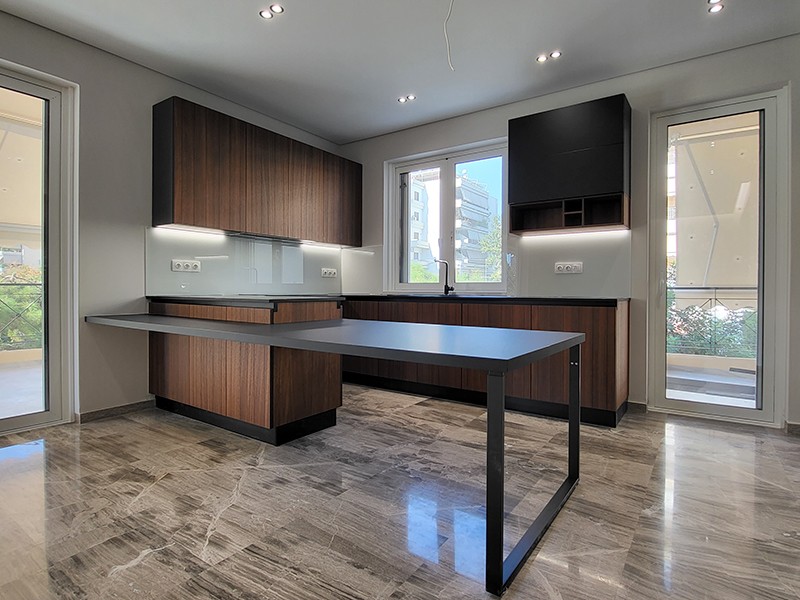 σε συνδυασμό με πορτάκια όψης μαρμάρου. Πλακίδια γρανίτη στο πάτωμα και στο μπάνιο