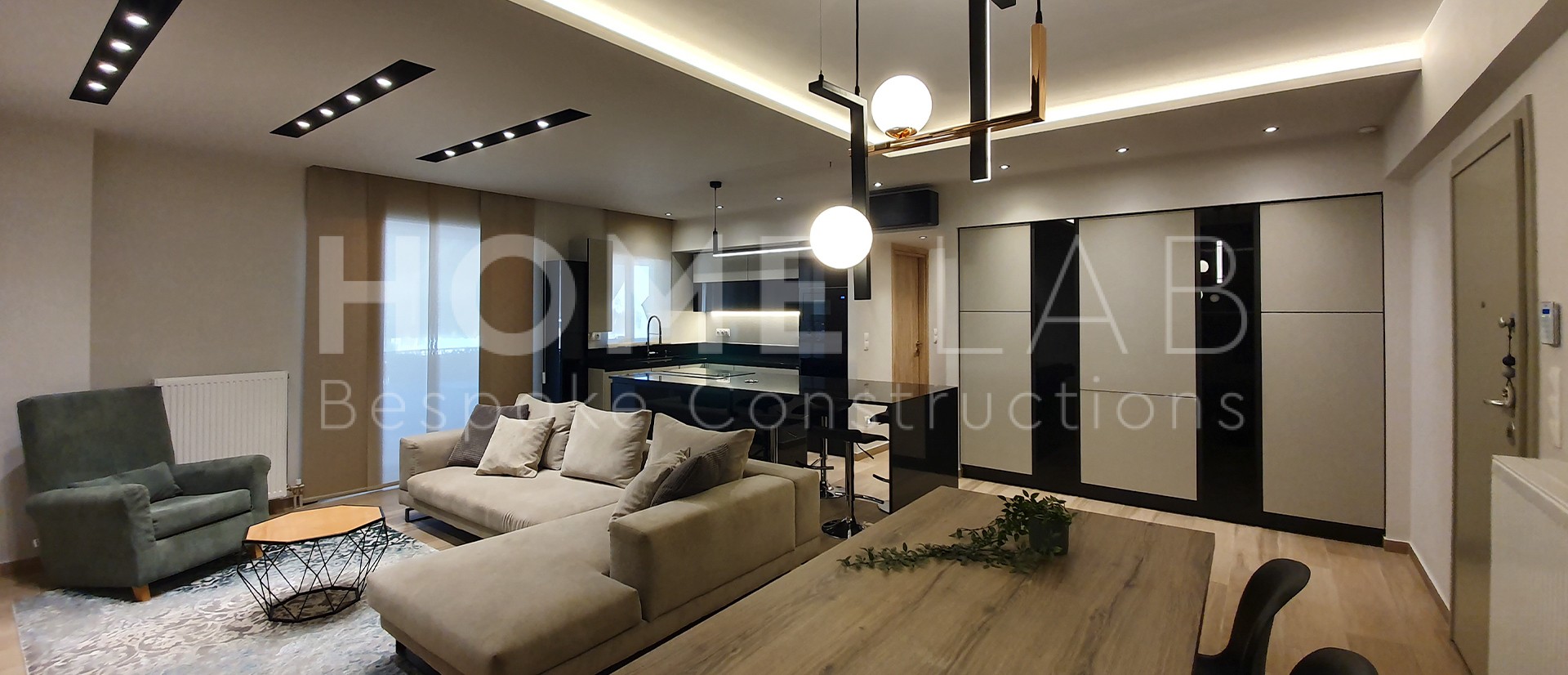 τζάκι βιοαιθανόλης, την τηλεόραση και τον μπουφέ της τραπεζαρίας.