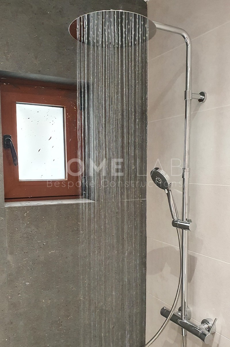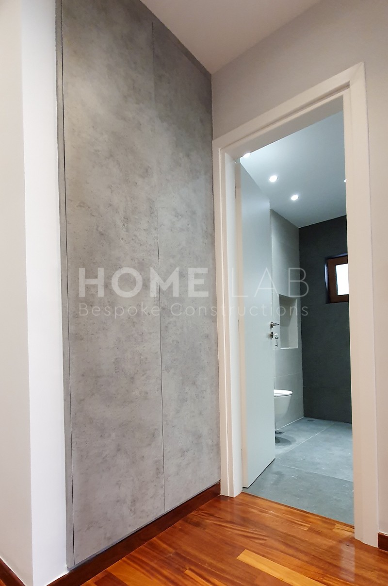 και WC με πλακάκια μεγάλων διαστάσεων από το συνεργαζόμενο κατάστημα Κατσίνας, ντουλάπες με κρυφούς